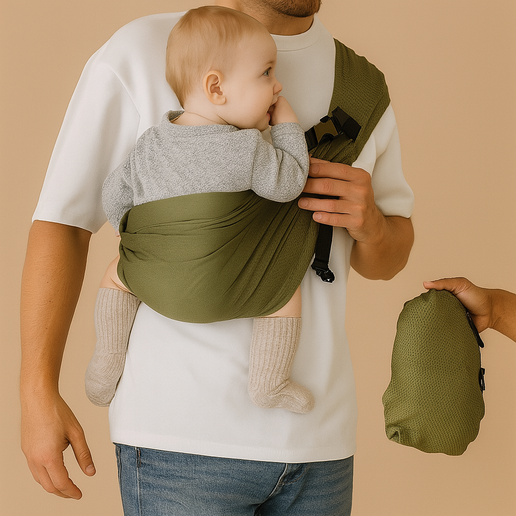 Además, nuestro portabebés pesa menos que un móvil, se pliega rápidamente y se convierte en su propia bolsa, pudiendo guardarlo y trasladarlo de manera rápida y sencilla.